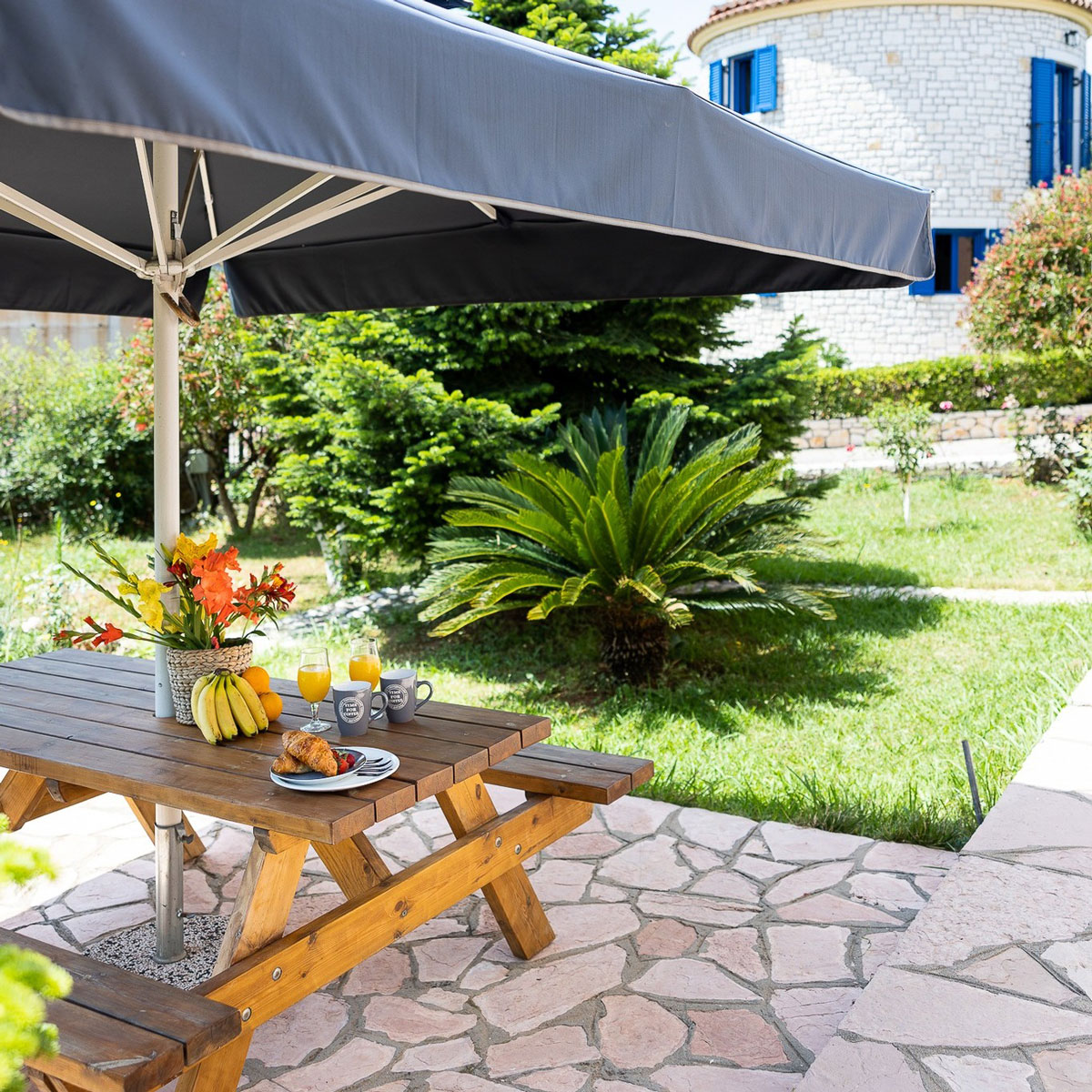 While children explore the playground, unwind in the garden, or soak up the sun on the terrace. Everything you need is nearby, with Corfu Town and Palaiokastritsa Village just a short drive away.