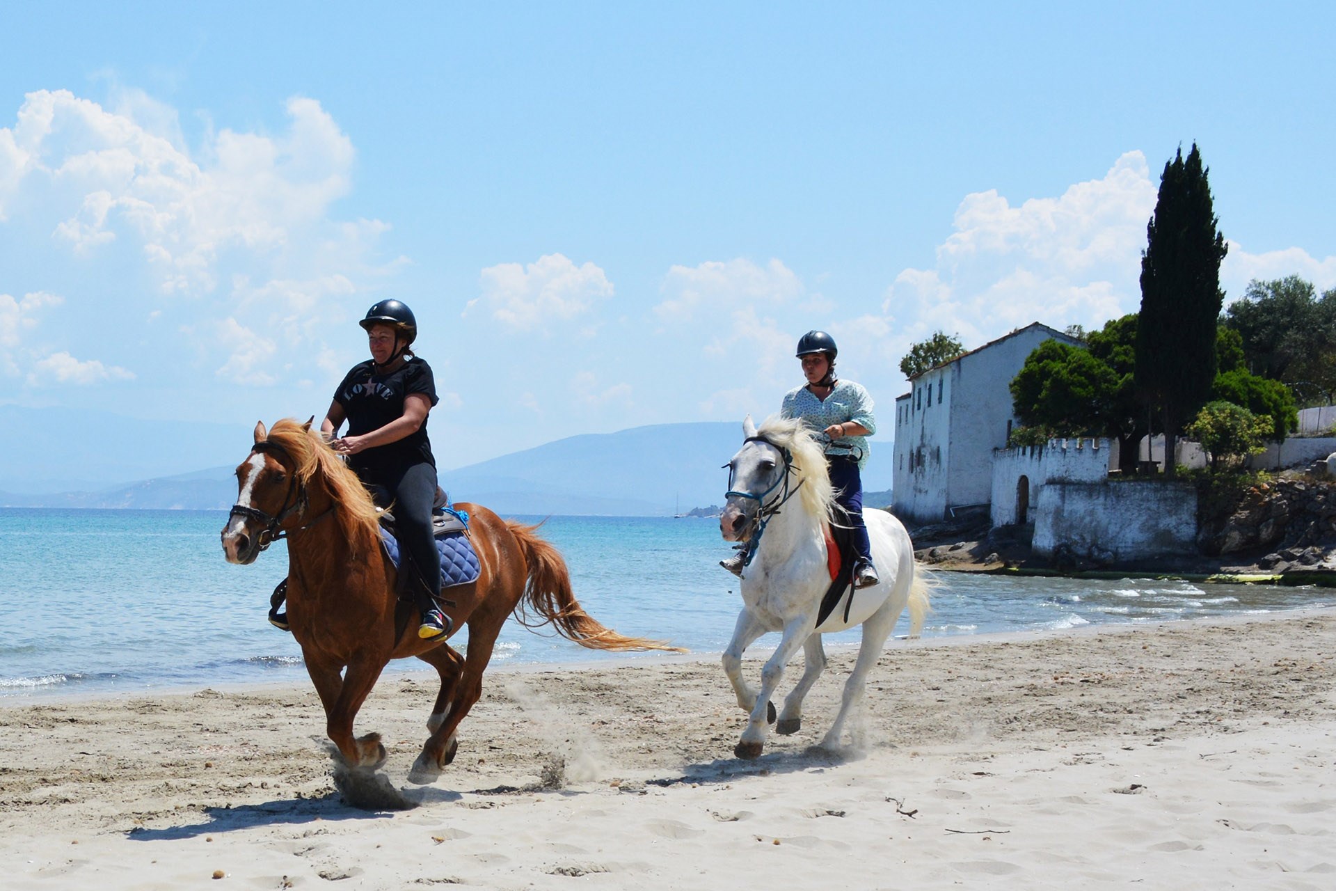 The owners of the stables are passionate animal lovers. Katerina is a certified environmental equestrian guide and horse trainer. Ilias has worked with horses since 2009 and holds a first-aid certification.